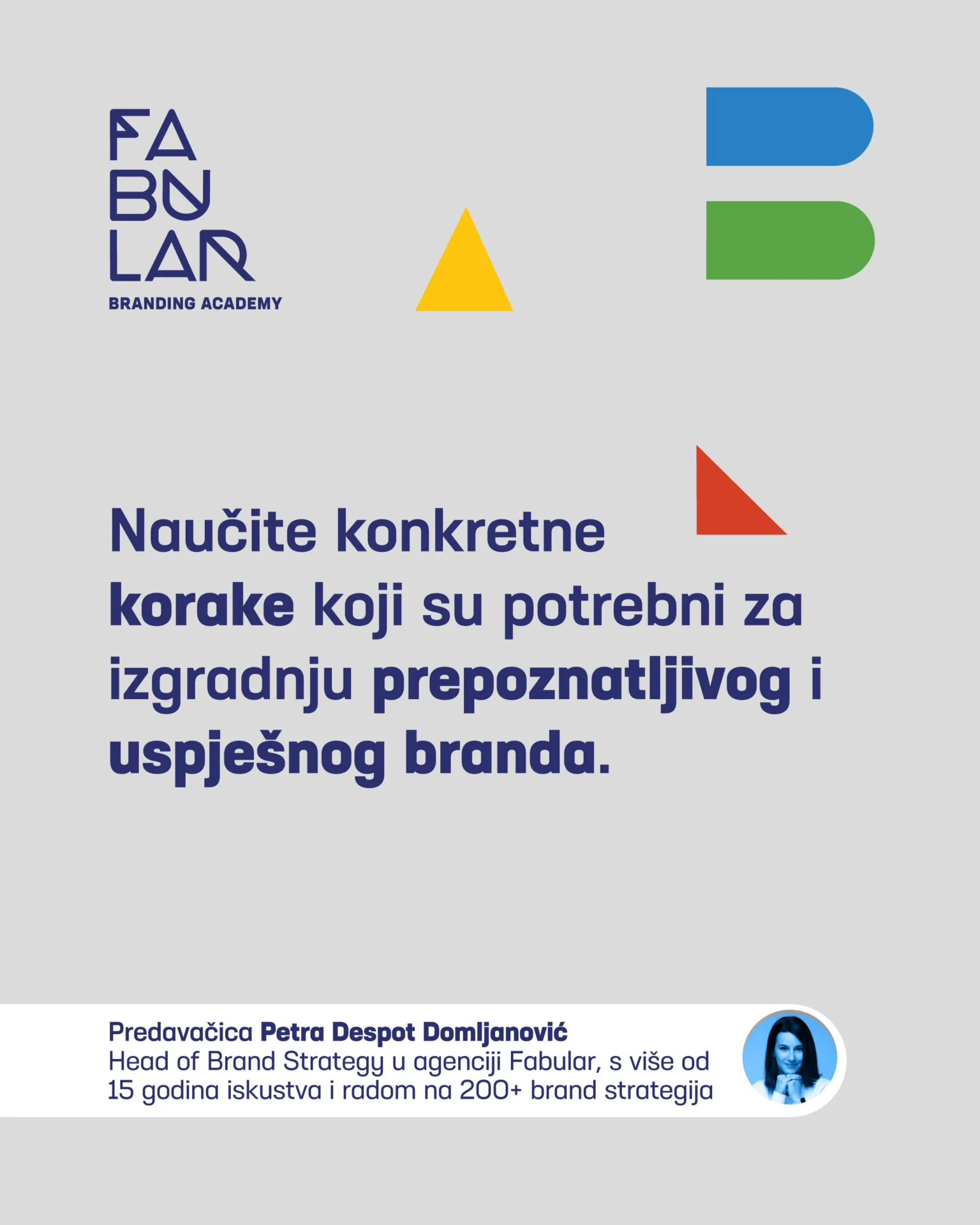 Predavanja se izvode u organizaciji branding agencije Fabular, jedine specijalizirane branding agencije u Hrvatskoj. Fabularovi brand konzultanti uvršteni su u REBRAND Hall of Fame™, među 25 najboljih na svijetu. Iza njih je više od 20 godina iskustva i izrada preko 300 brand strategija za domaće i svjetske brandove. Neki od uspješnih brandova za koje smo radili su ENT Ericsson Nikola Tesla, Algebra, Infobip, Bornfight, Maistra Hotels&Resorts, Valamar Riviera, MojPosao, Grad Trogir, Otok Hvar, Syskit, Electrocoin, Rajska i mnogi drugi.