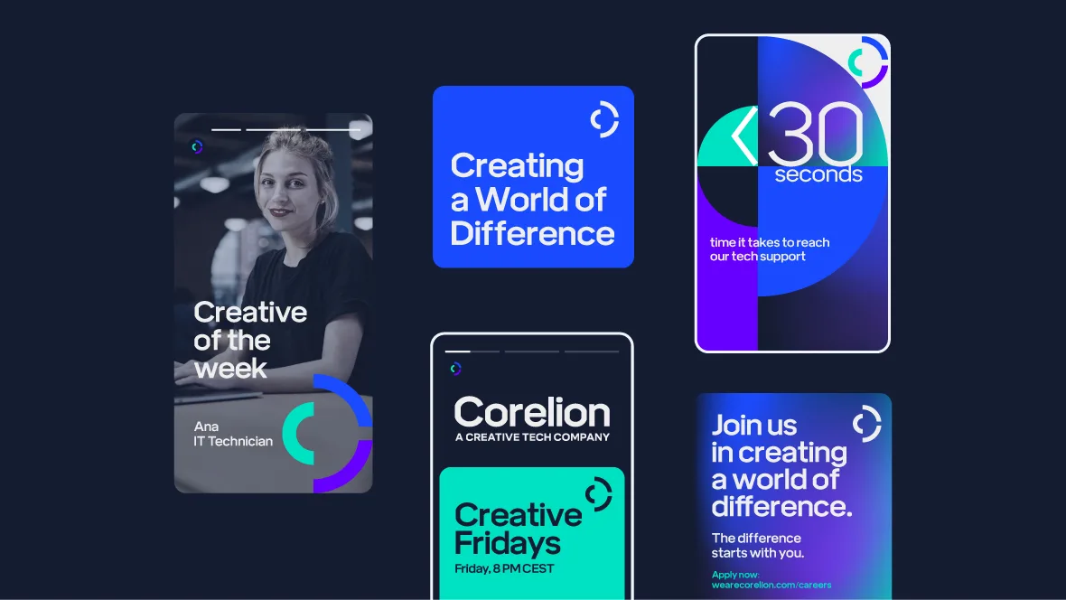 Naš je cilj bio da novo ime branda ne odražava samo njihovu tehničku stručnost, već i srce kao srž njihovog rada – njihovu nepokolebljivu predanost brizi za svakog klijenta. Tako je nastao Corelion, ime koje utjelovljuje srčanost kao njihovu suštinu. S fokusom na zdravstvo, svaka njihova usluga – od otklanjanja sitnih kvarova do velikih cloud rješenja – provodi se pažljivo i odlučno. Upravo je to ono što ih izdvaja i što je postalo temelj komunikacije branda.