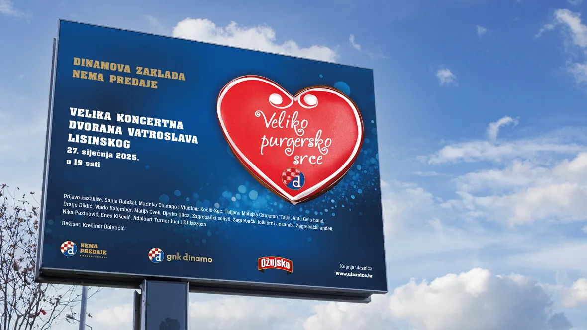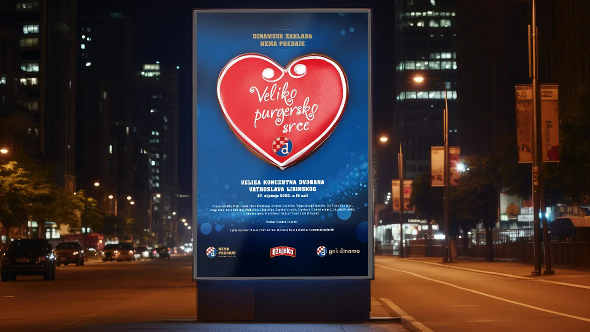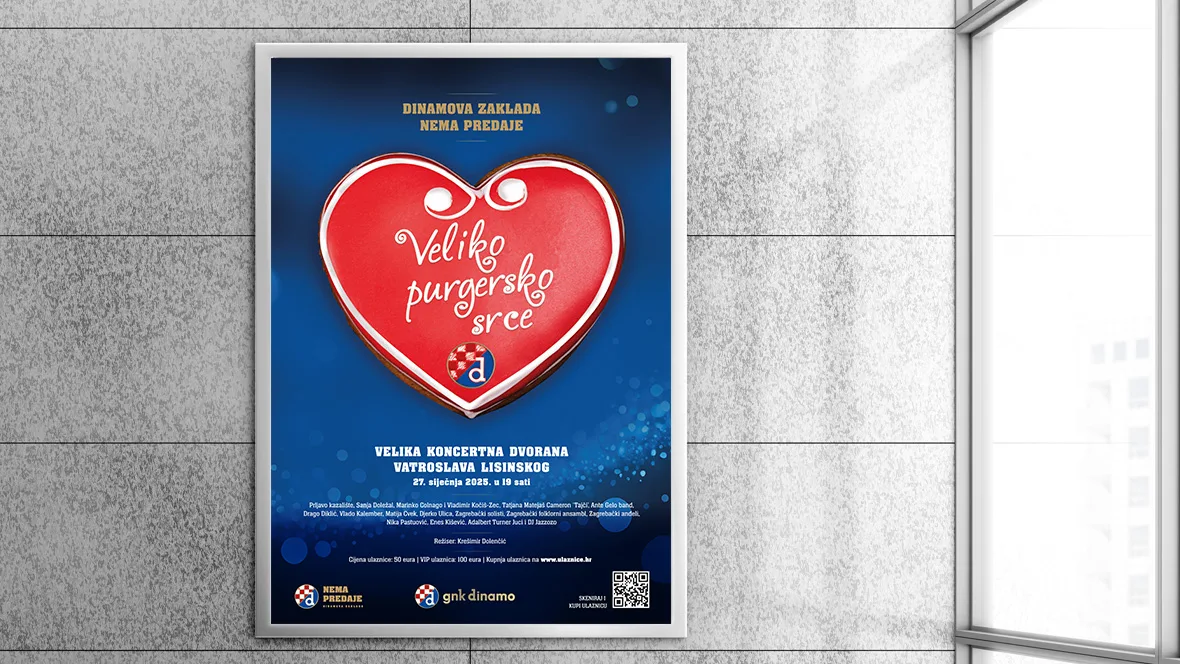 ‘Veliko purgersko srce’ was a donation concert held by Dinamo’s Nema predaje Foundation for which we created the name, visual identity and materials for its media campaign. Foundation ”Nema predaje” is the official foundation of GNK Dinamo, which aims to promote equality and equity and provide assistance based on social solidarity.
